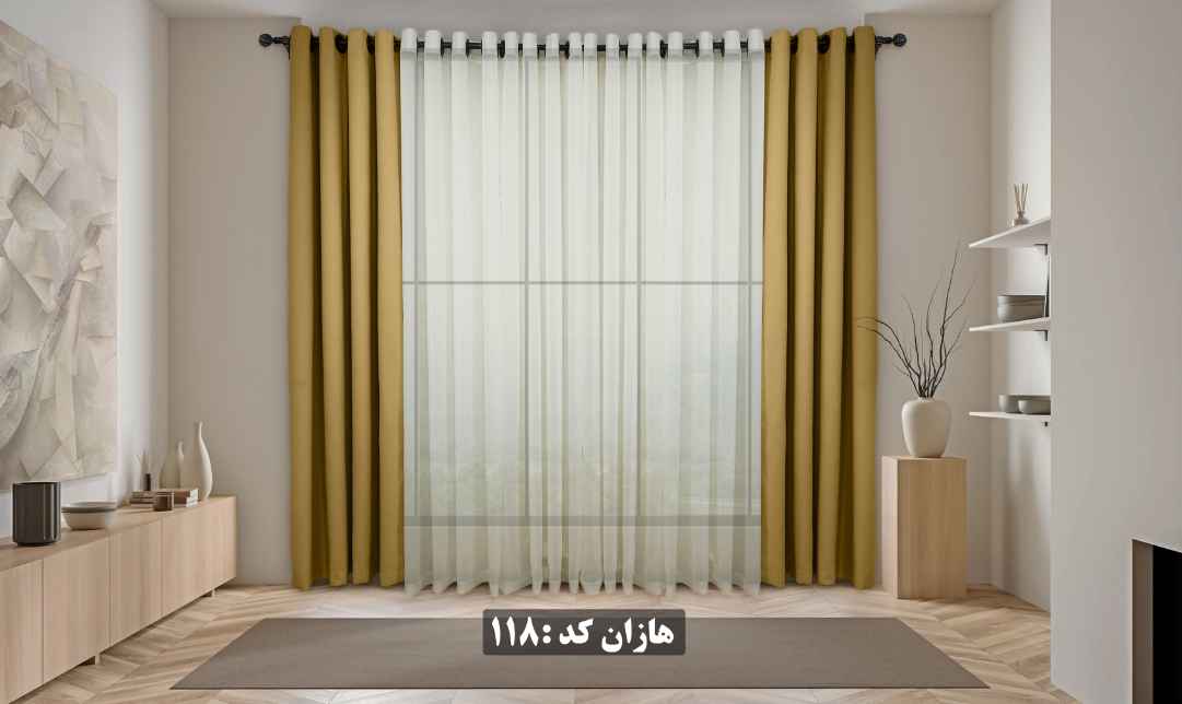 پرده آماده هازان کد ۱۱۲ - رنگ خردلی